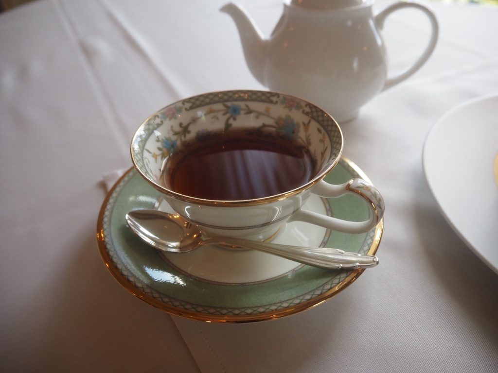 セットのブレンドティーはシンプルかつ香り高い一杯。控えめながらもマイルドな味わいのおかげで、最後のひと口まで飽きずにミルフォイユを堪能できました。