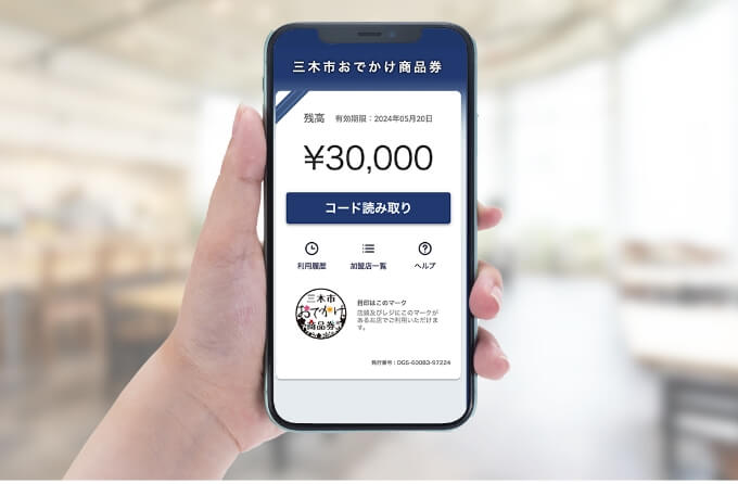 受け取った「三木市おでかけ商品券(デジタル商品券)」は、「珈琲庵 珈集 三木本店」をはじめとする三木市内の加盟店での会計時にすぐに利用可能です。