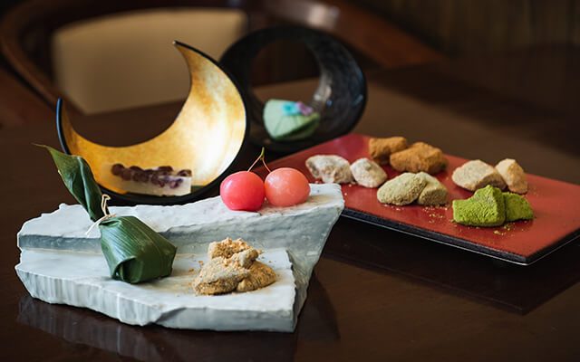 和菓子には季節ごとに旬の食材を取り入れており、四季の移ろいを味覚でも楽しめます。なかでも、希少な本わらび粉を100%使用したわらび餅は、訪れたらぜひ味わっていただきたいひと品です。