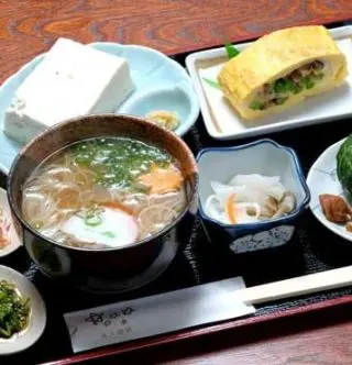 地元・大峯の名水「ごろごろ水」や、清流・山上川の恵みで育まれた川魚、春の山菜、秋のきのこなど、山の幸が料理を彩ります。なかでも大峯山の湧き水を使った「名水とうふ」は、昔ながらの手法で作られた逸品。絹ごしでも木綿でもない独特ののどごしと、大豆本来のコクを楽しめます。