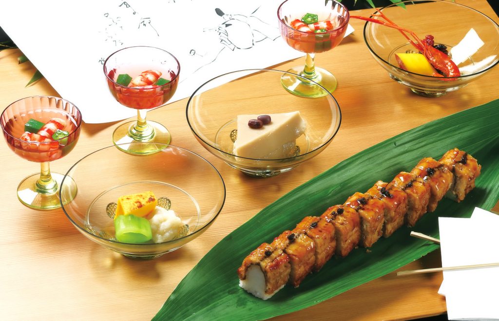 | 先付 | はすの葉盛り・鬼灯・うろり・南瓜・蓮根・木耳・冬瓜・フォアグラゼリー |