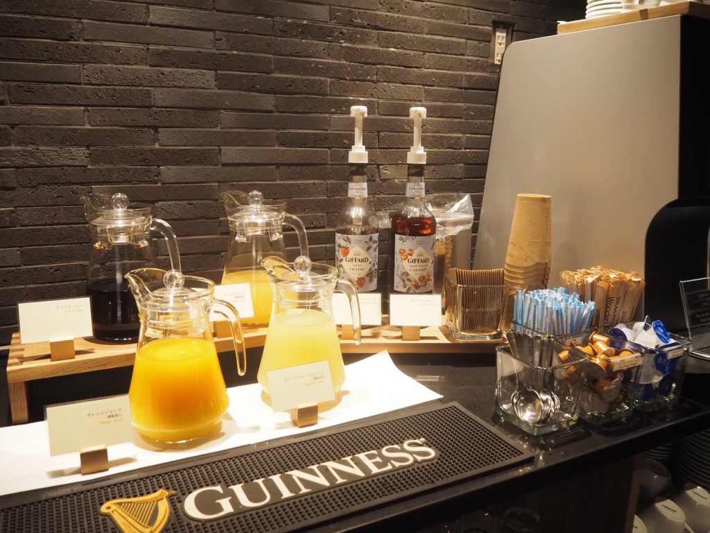 宿泊者なら誰でも無料でいただけ、コーヒーや紅茶、ジュースなどもフリードリンクで飲むことができます。