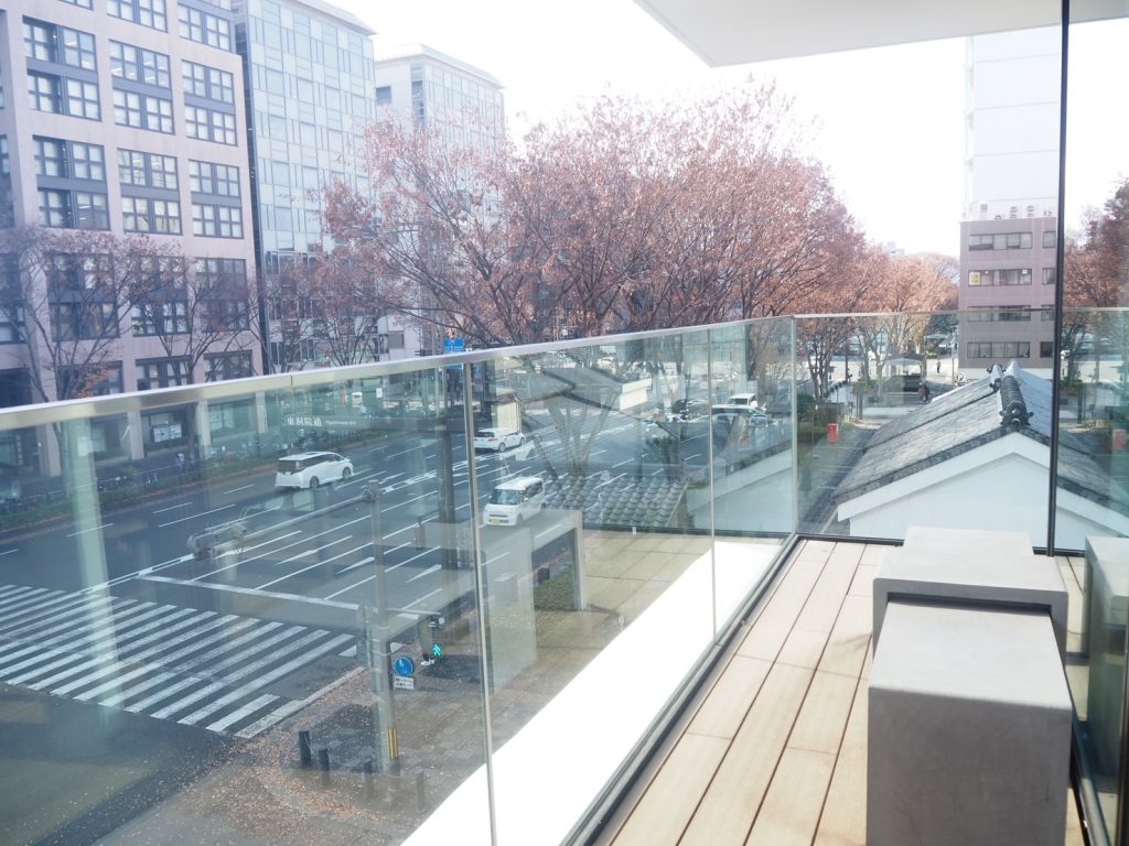 また、コーナーバルコニーには出入りのできるテラスが備わっており、風にあたりながらくつろぐことも可能です。ベンチに座り、景色を眺めながら京都の雰囲気に浸れます。