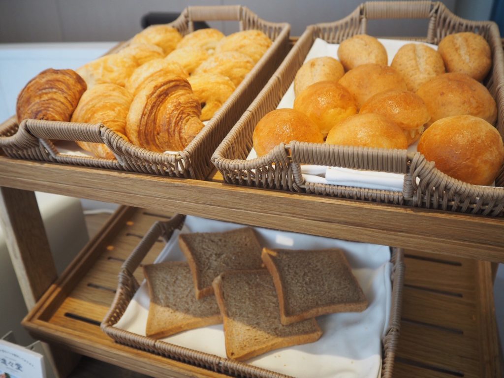 この日は、クロワッサン、チョコレートデニッシュ、ブラウンブレットの3種類が並んでおり、香ばしい香りがふんわりと漂ってきました。