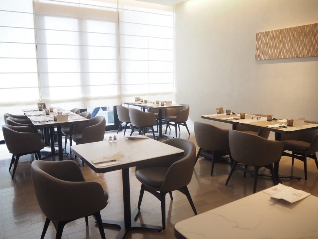 ホテル1階のダイニング&カフェ「THE OIKE TERRACE」は、40席が並ぶゆったりした空間。窓からは光が差し込み、御池通を眺めながら食事を楽しめます。