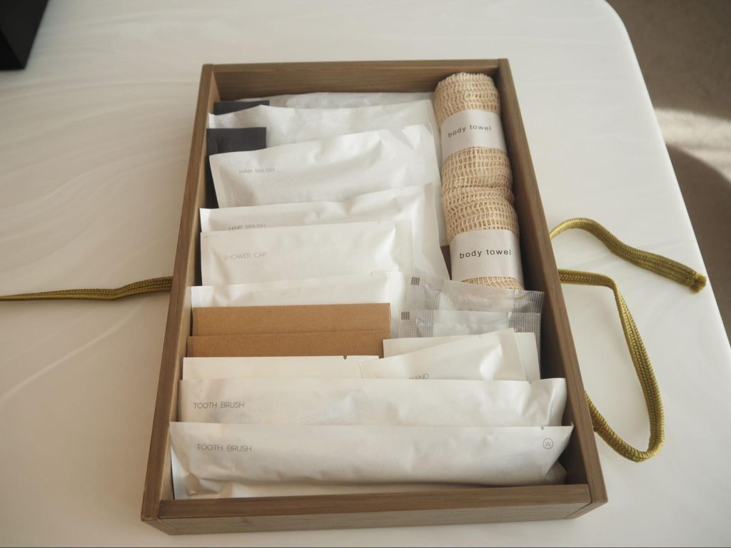 アメニティはまるで玉手箱のような木箱に入れられています(一部客室をのぞく)。開けるときのワクワク感を楽しめるのも嬉しいですね。