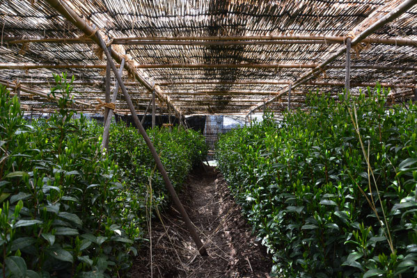 「ほんず」とは、茶園に作った棚にヨシの木で編んだ「よしず」を広げ、「わら」を葺いた伝統的な被覆方法です。よしずは日光を遮り、お茶の甘みが苦みに変わるのを防いでくれます。そのため「ほんず茶園」で育ったお茶は、まろやかな旨みがしっかり残っているのです。